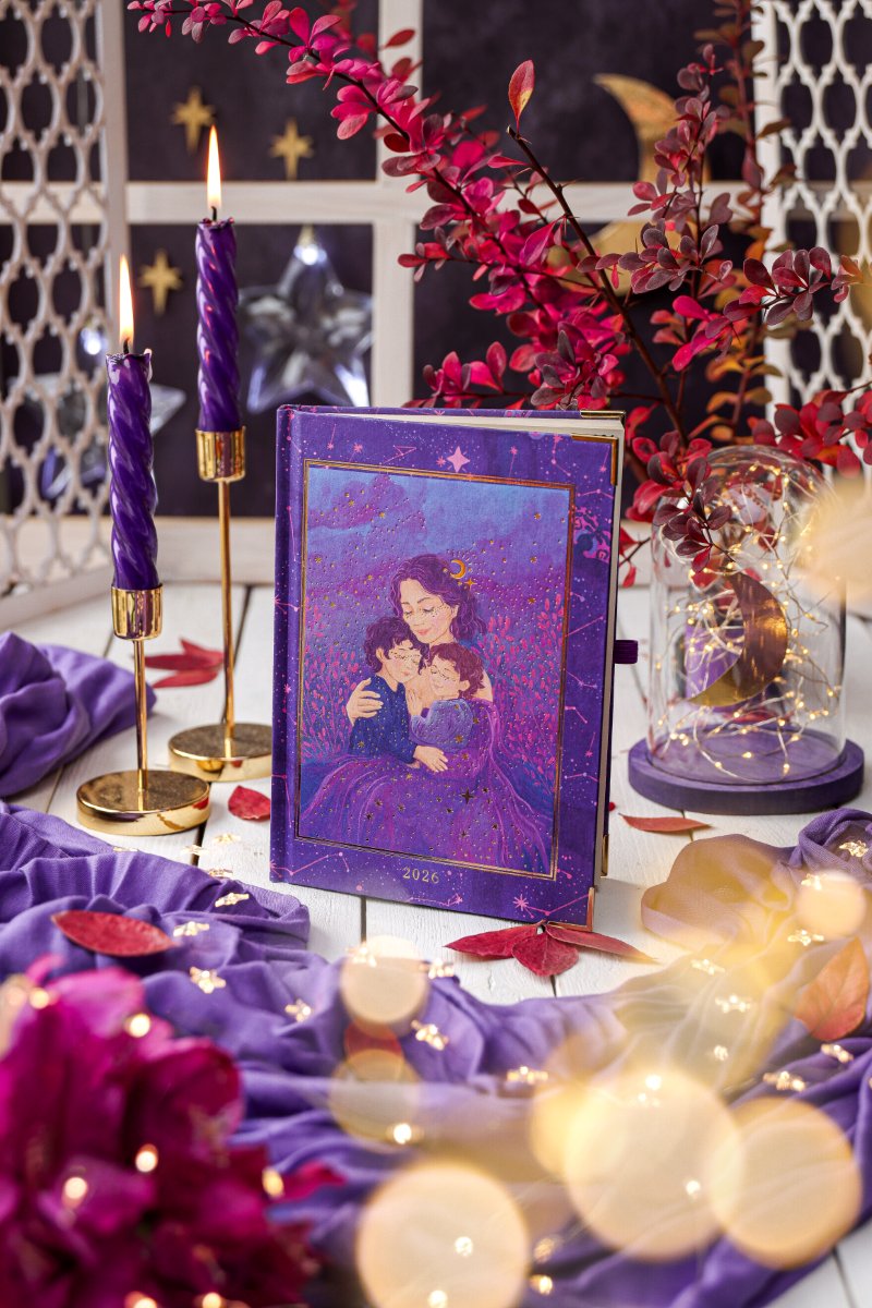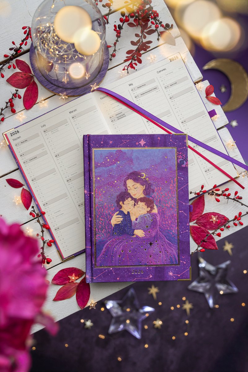 Daj się otulić objęciom fioletu. Druga z okładek Kalendarzy Niezapominajki na 2026 rok. To wyjątkowa propozycja dla kobiet, które każdego dnia noszą na swoich barkach bardzo wiele - są mamami, opiekunkami, organizatorkami życia rodzinnego, specjalistkami od zadań wszelakich... ale także kobietami, które próbują w tym wszystkim nie zgubić siebie. Ten kalendarz ma Cię wspierać - dokładnie z taką samą czułością, z jaką Ty wspierasz innych. To przestrzeń, która ma Ci przypominać, że zasługujesz na własny czas, własne marzenia i własny oddech. Że nie musisz wszystkiego ogarniać idealnie, żeby robić to wystarczająco dobrze. Fiolet symbolizuje duchowość, refleksję, troskę, jest jak nocne niebo, w którym wreszcie można odpocząć.