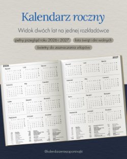 🔹Kalendarz roczny - do szybkiego sprawdzenia terminów, świąt czy wyjazdów