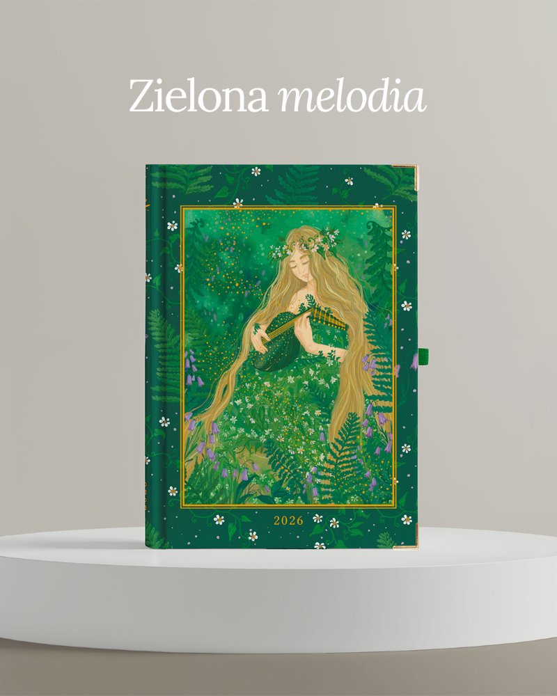 Wsłuchaj się w zieloną melodię. Oto czwarta (ostatnia) z okładek Kalendarzy Niezapominajki 2026 - stworzona dla wszystkich artystycznych dusz, które czują mocniej, żyją uważniej i szukają w planowaniu nie tylko struktury, ale też piękna. To ilustracja dla tych z Was, które czują się najlepiej blisko natury. Zieleń uspokaja, przynosi wytchnienie, pomaga zredukować stres i odetchnąć. Zielona melodia to propozycja dla kobiet, które chcą odnaleźć balans między sercem a rozsądkiem. Dzięki temu kalendarzowi Twoje dni będą ułożone niczym piękna melodia - z lekkością, bez chaosu. Czy właśnie tego potrzebujesz w 2026? Jakość, którą docenią koneserzy – gruby, idealnie gładki papier w kolorze kremowym, po którym pisze się z onieśmielającą przyjemnością. Piękne okładki wykonane z fakturowanego papieru typu akwarelowego ze złoconymi tłoczeniami – to niesamowita uczta dla każdego papierofila!
